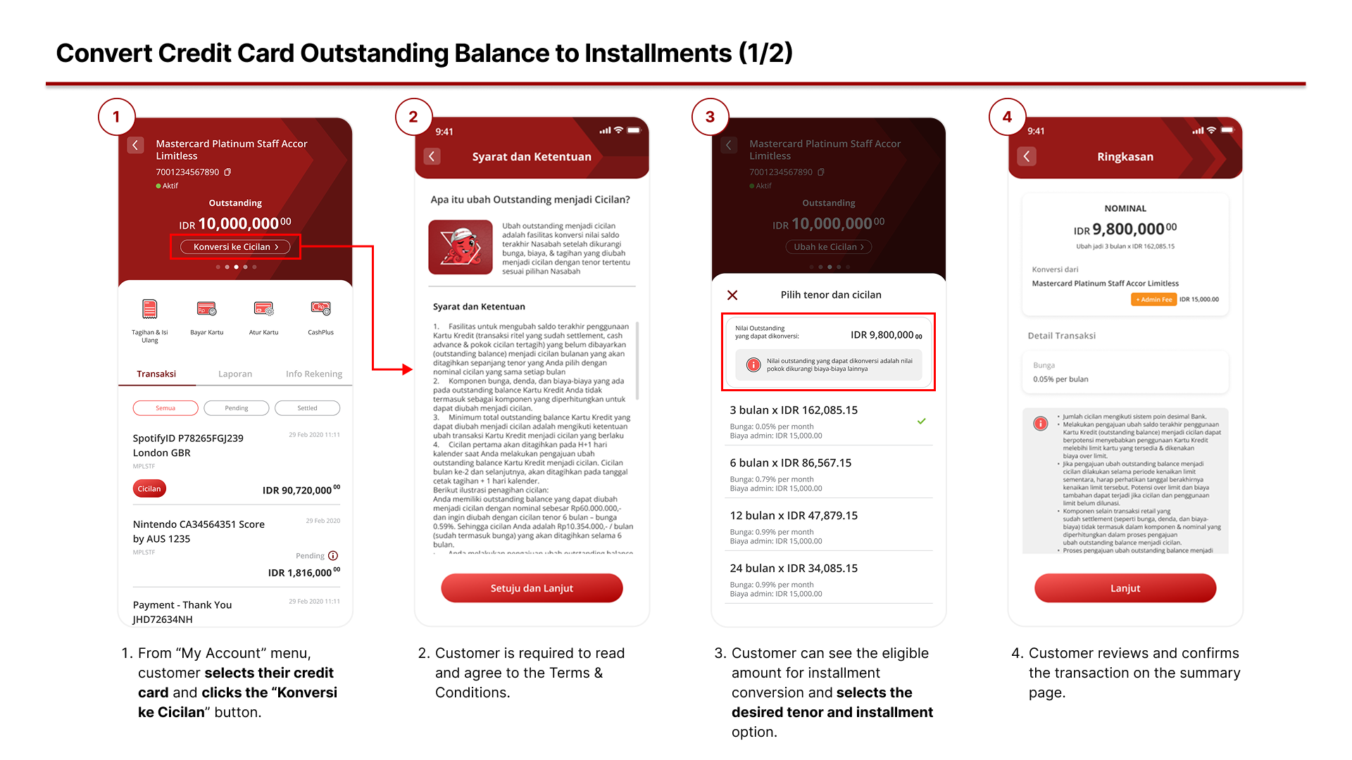 - The card must be an individual conventional credit card (not Sharia or Corporate).