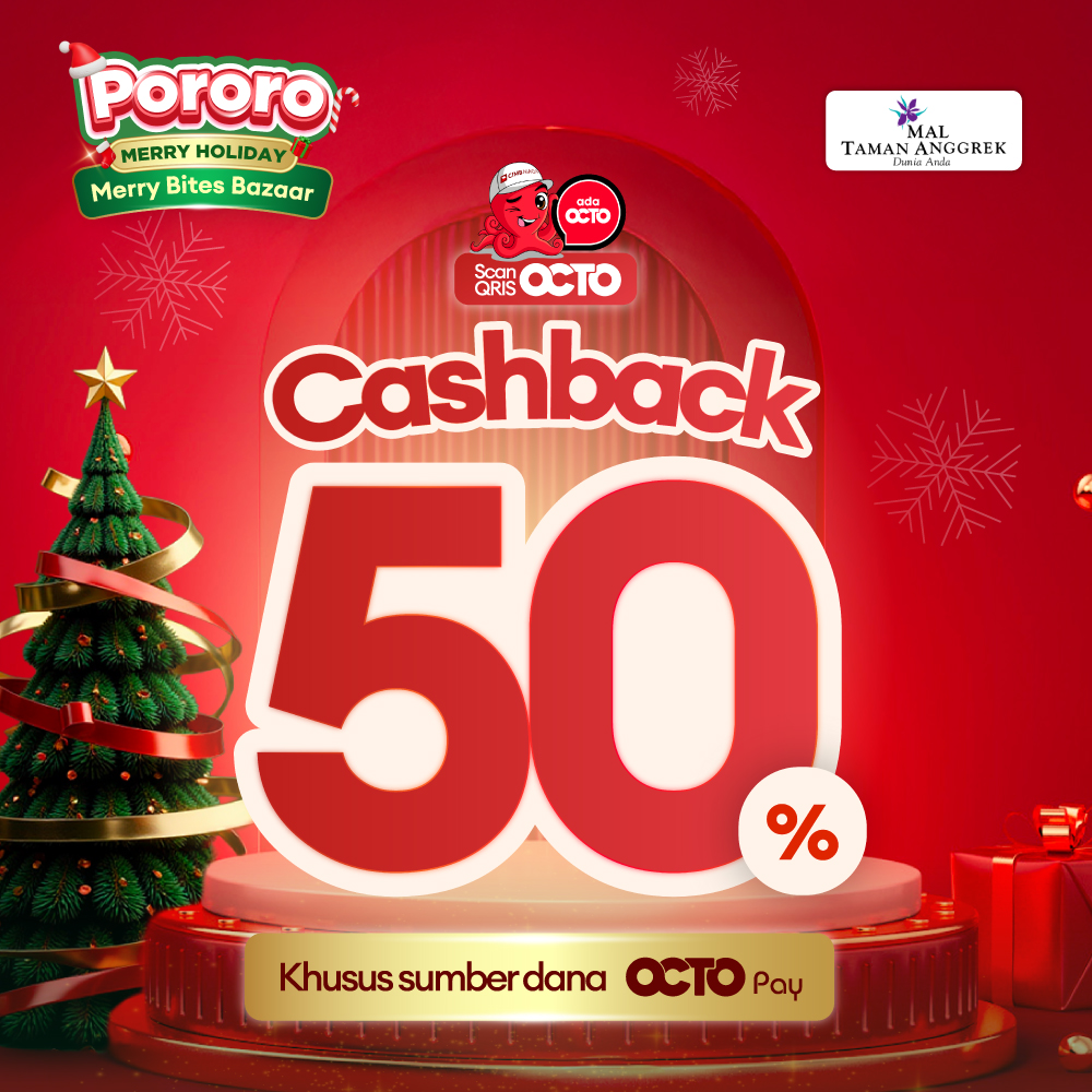 Cashback 50% di event Pororo Merry Holiday-Merry Bites Bazaar, Mall Taman Anggrek dengan menggunakan QRIS OCTO