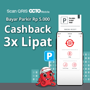 Bayar Parkir Rp 5.000 dapat Cashback 3X Lipat dengan scan QRIS OCTO Mobile