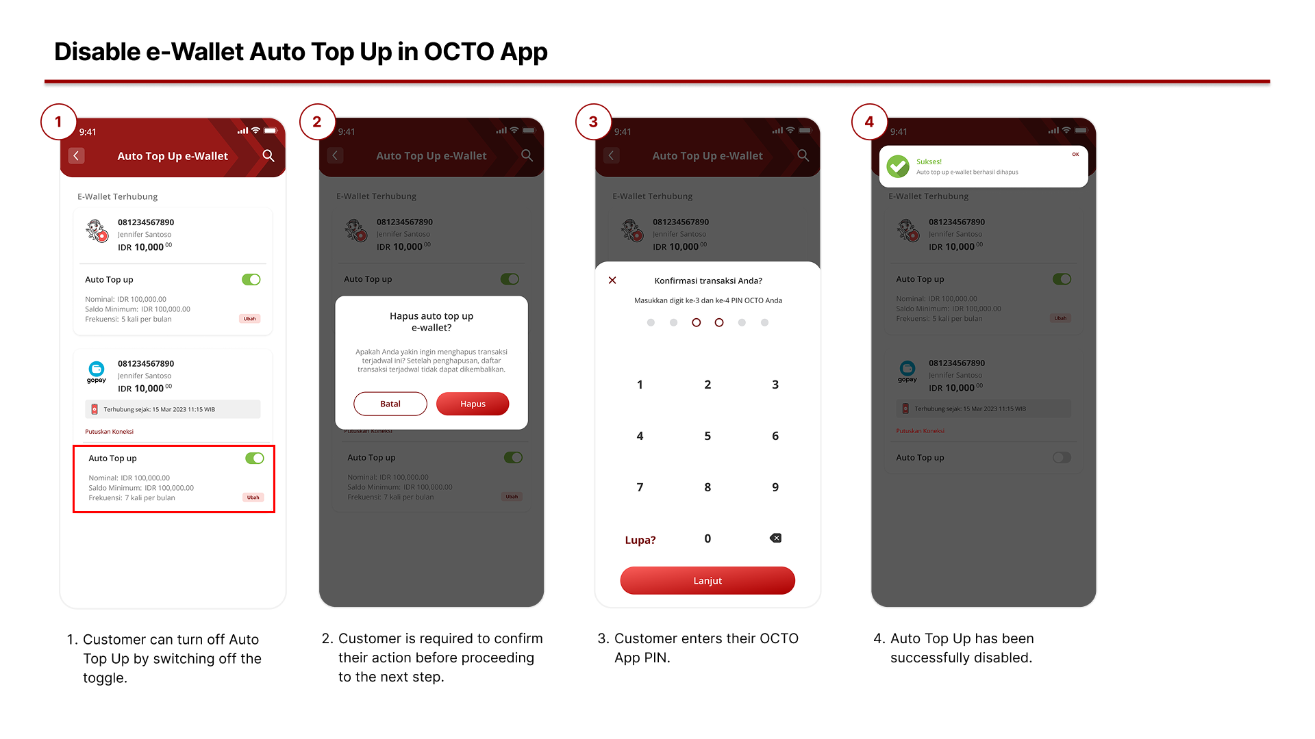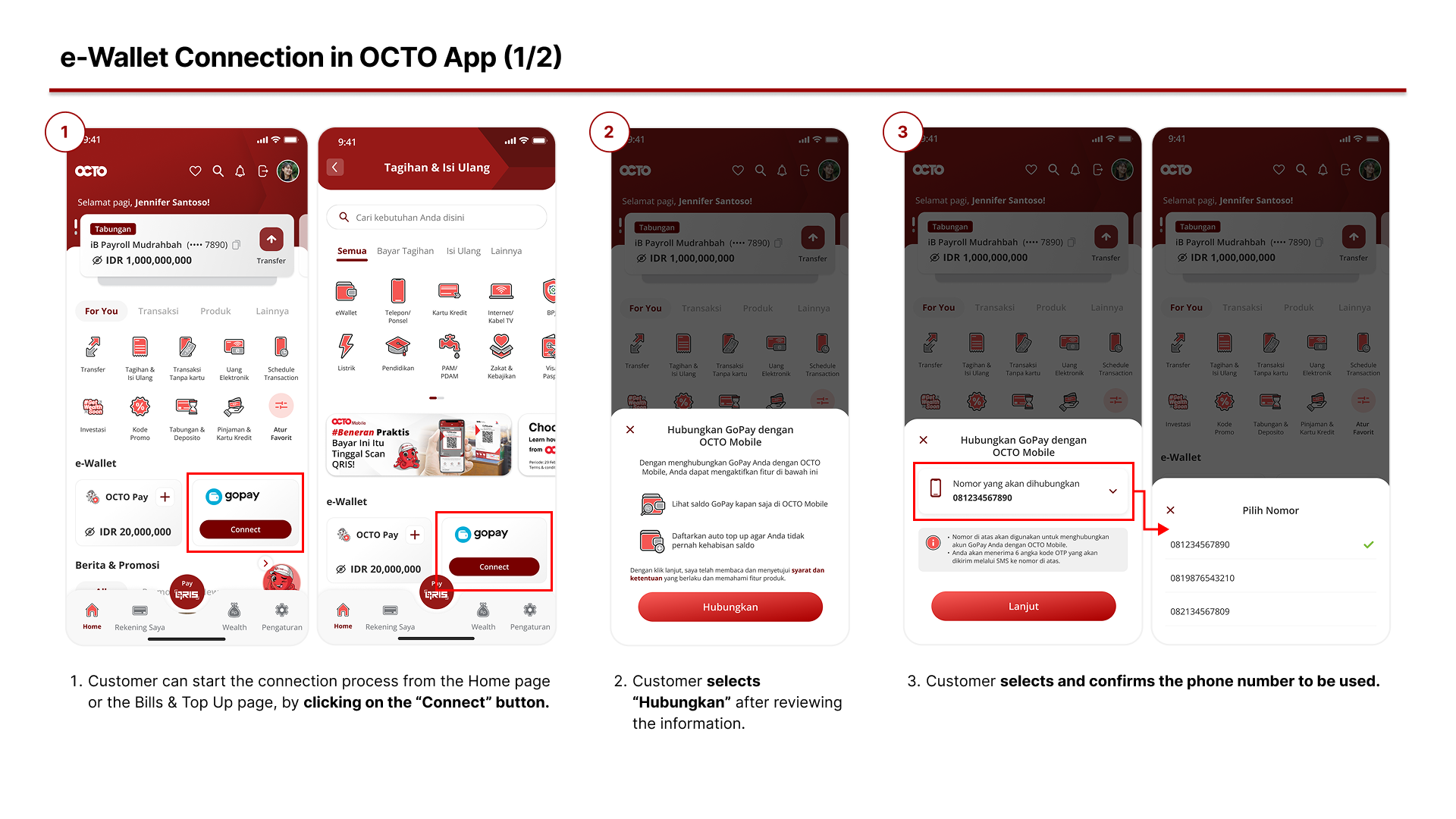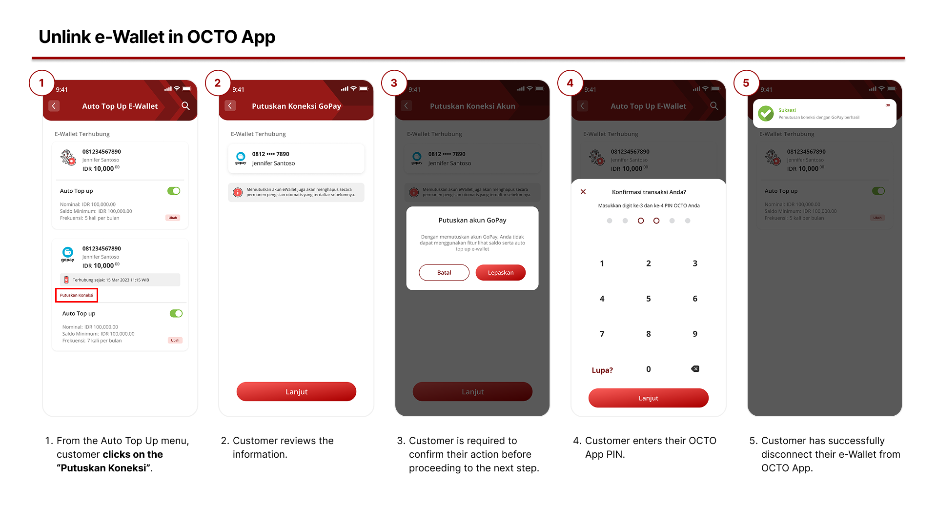 - If my e-Wallet is already linked to OCTO App, can I disconnect it later? Yes, you can disconnect a linked e-Wallet anytime by tapping the “Disconnect” button under e-Wallet connections in OCTO App.