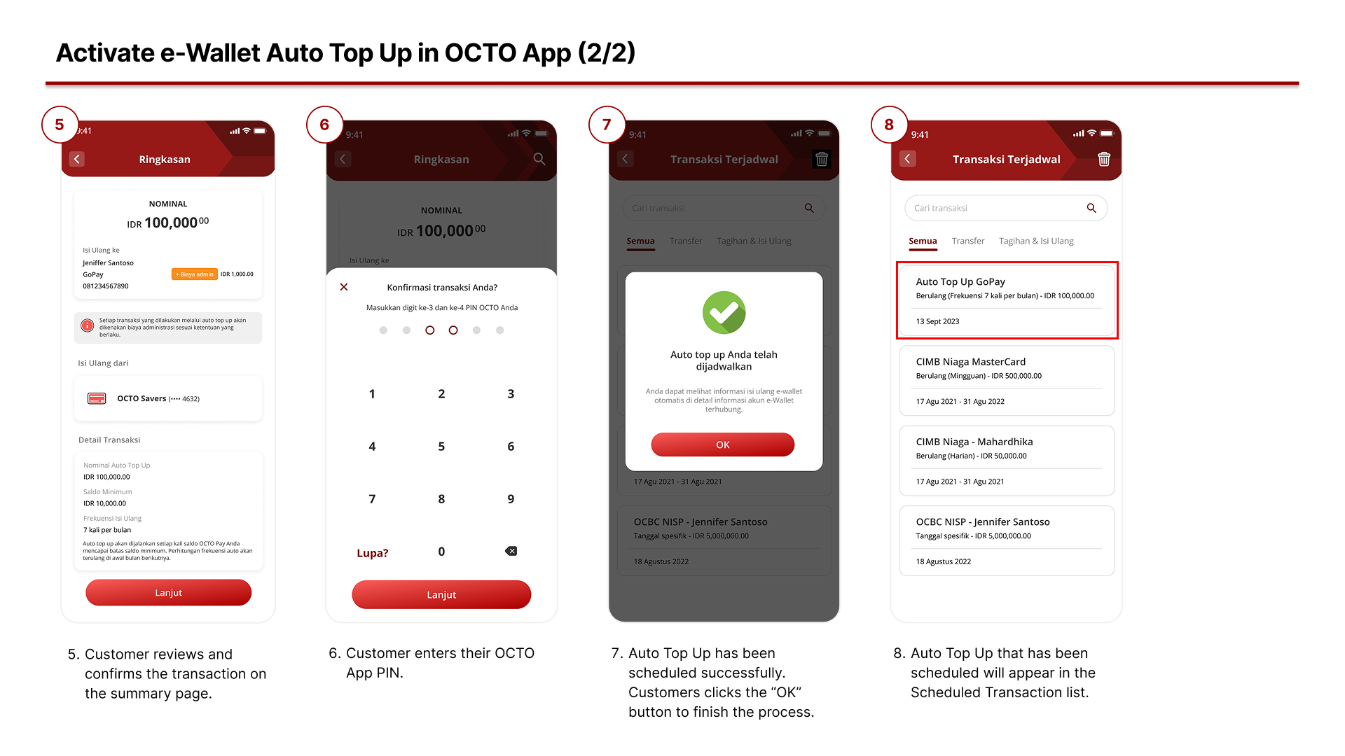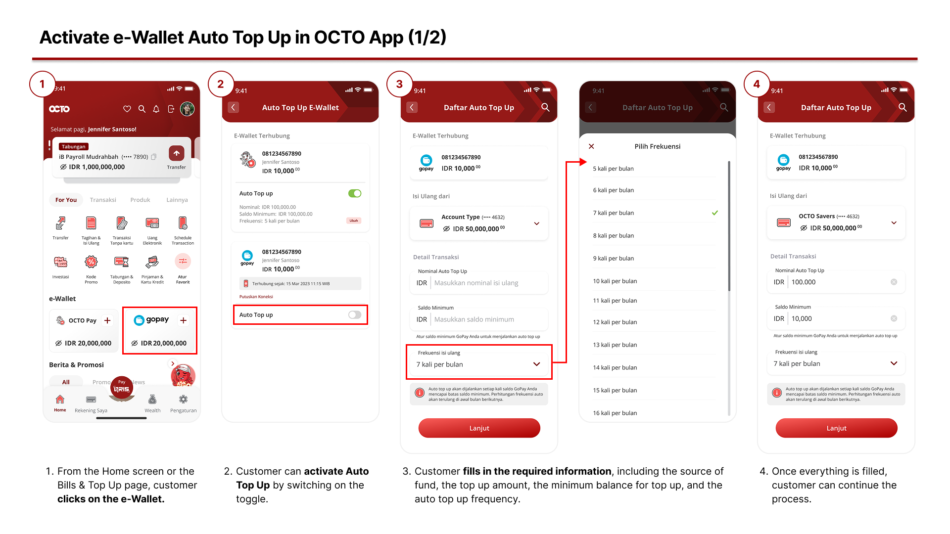 - Can I set up auto top-up for my e-Wallet using a credit card as the source of fund? Currently, auto top-up in OCTO App can only be done using a savings account as the source of fund. Please stay tuned to CIMB Niaga’s social media and website for future updates on additional source of fund options.