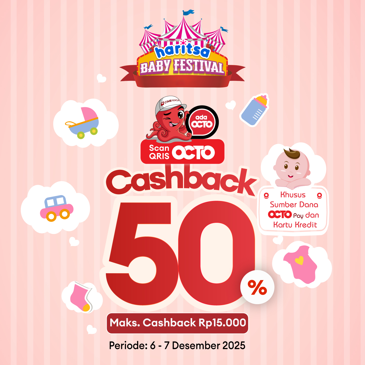 Cashback 50% at Haritsa Baby Festival by scanning QRIS OCTO