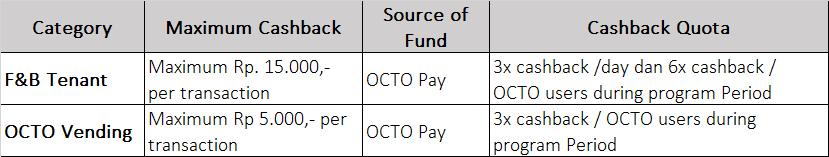- Cashback 50% by scanning QRIS OCTO, detail below: