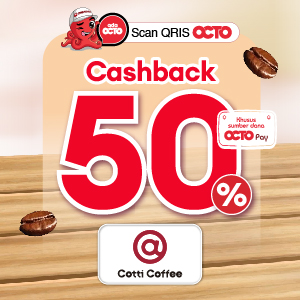 - Cashback 50% (maximum cashback Rp 15,000) on the Cotti Coffee app, payment using scan QRIS OCTO.
