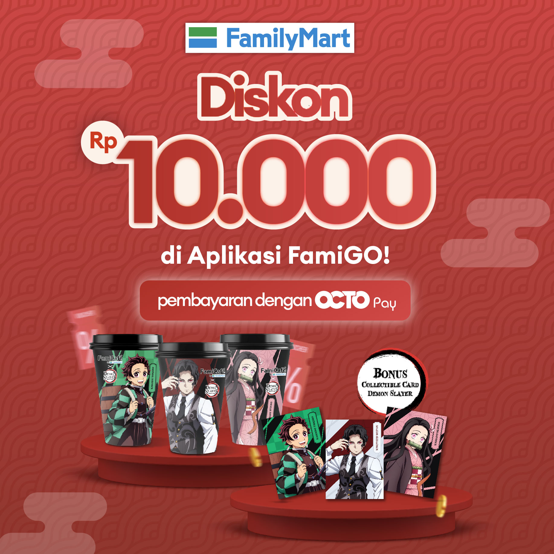 - Discount Rp 10.000 at FamiGO app with using as payment method OCTO Pay.