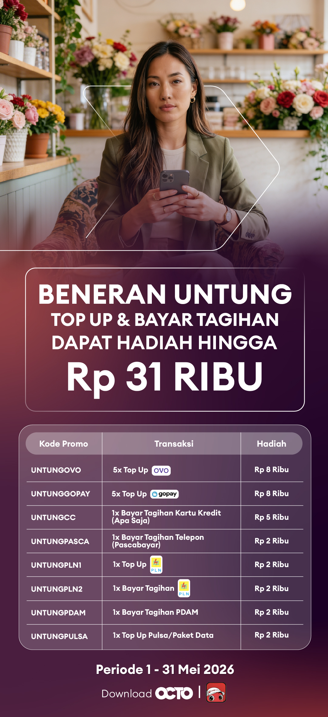 Get rewards up to IDR 31K: top up & bill payment via Website OCTO