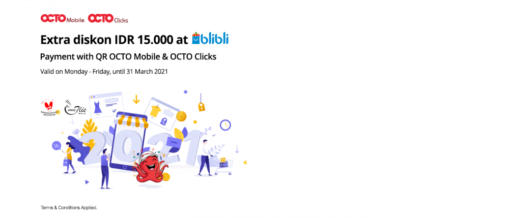 Discount IDR 15,000 at BliBli, payment with CIMB Clicks or QR OCTO Mobile