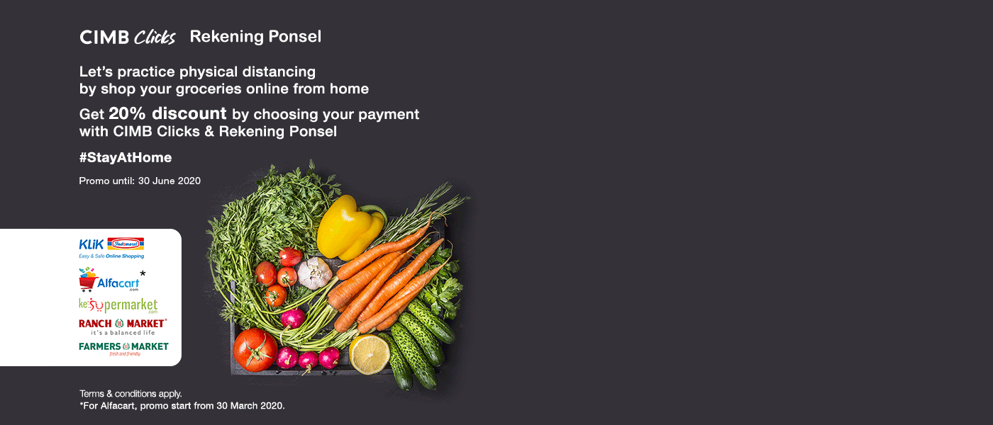 Shop your groceries online & get 20% discount, from CIMB Clicks & Rekening Ponsel