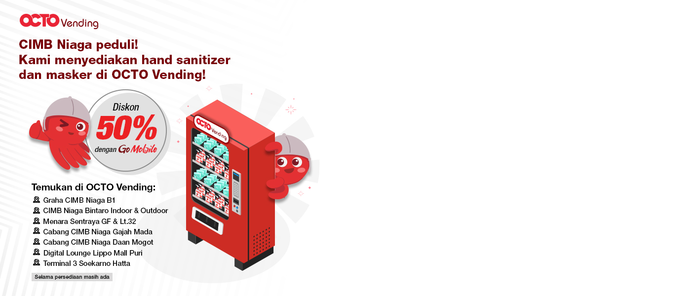 50% Discount Program for Mask and hand Sanitizer at OCTO Vending CIMB Niaga