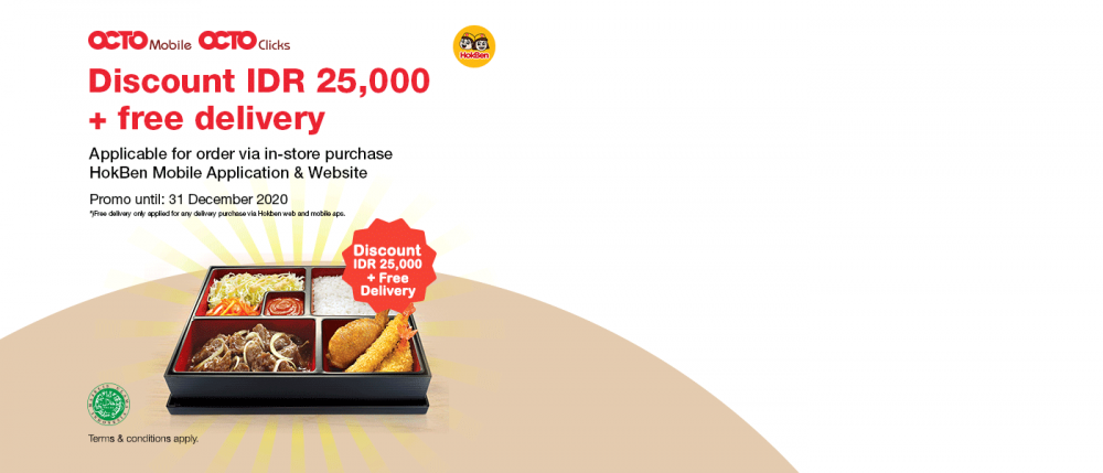 Discount Rp 25.000 + Free Delivery Fee at HokBen, payment using QR OCTO Mobile & OCTO Clicks