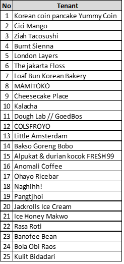 List Tenant – Program Cashback 50% di event Local Viral Food Fest dengan menggunakan QRIS OCTO Mobile List Tenant – Local Viral Food Fest dengan menggunakan QRIS OCTO Mobile
