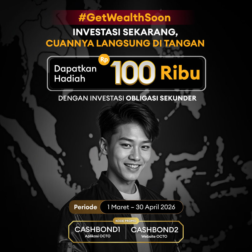 9. Hadiah akan dikreditkan ke rekening OCTO Pay untuk transaksi di Aplikasi OCTO atau ke rekening utama (default account) untuk transaksi di Website OCTO atas Pembelian Obligasi Sekunder yang memenuhi syarat.