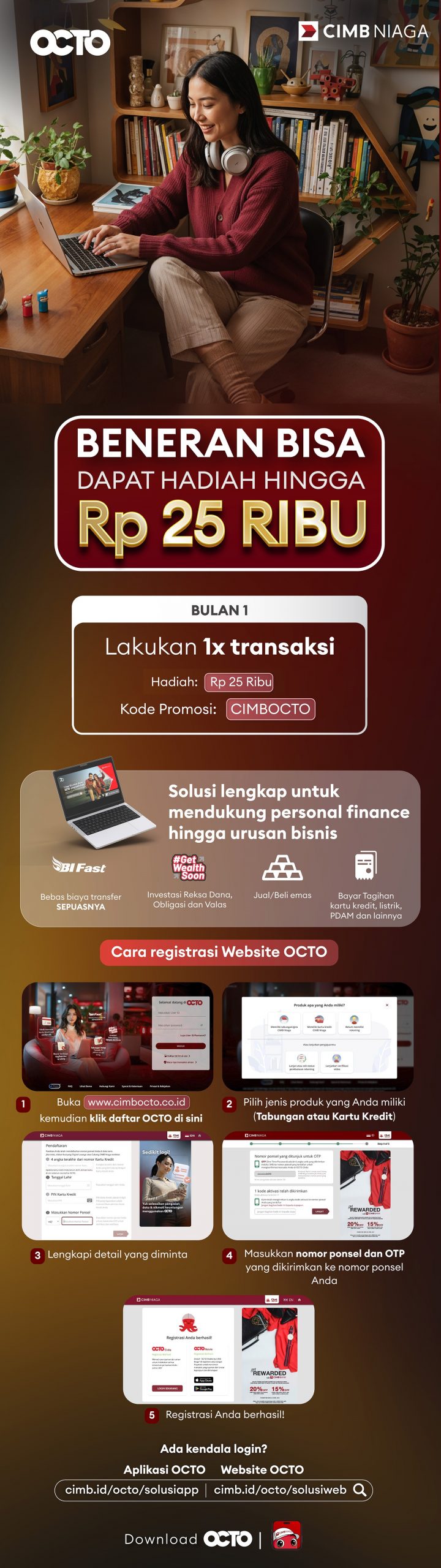 Promo berlaku untuk: Semua pengguna baru Website OCTO yang melakukan pendaftaran pertama kali selama periode promo (tidak termasuk re-registrasi).