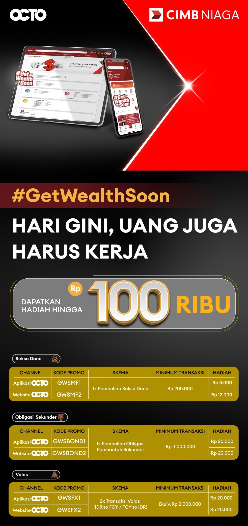 - Program dimulai pukul 10.00 WIB untuk Aplikasi dan Website OCTO.