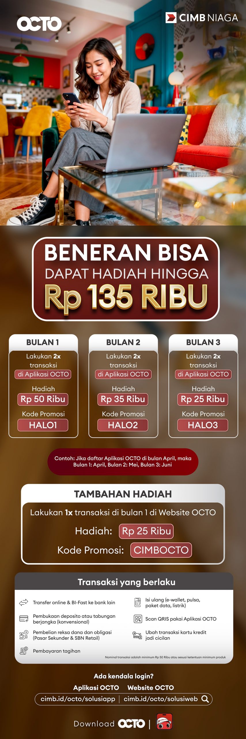 - Promo berlaku untuk Pengguna baru OCTO yang registrasi di periode Oktober – Desember 2025