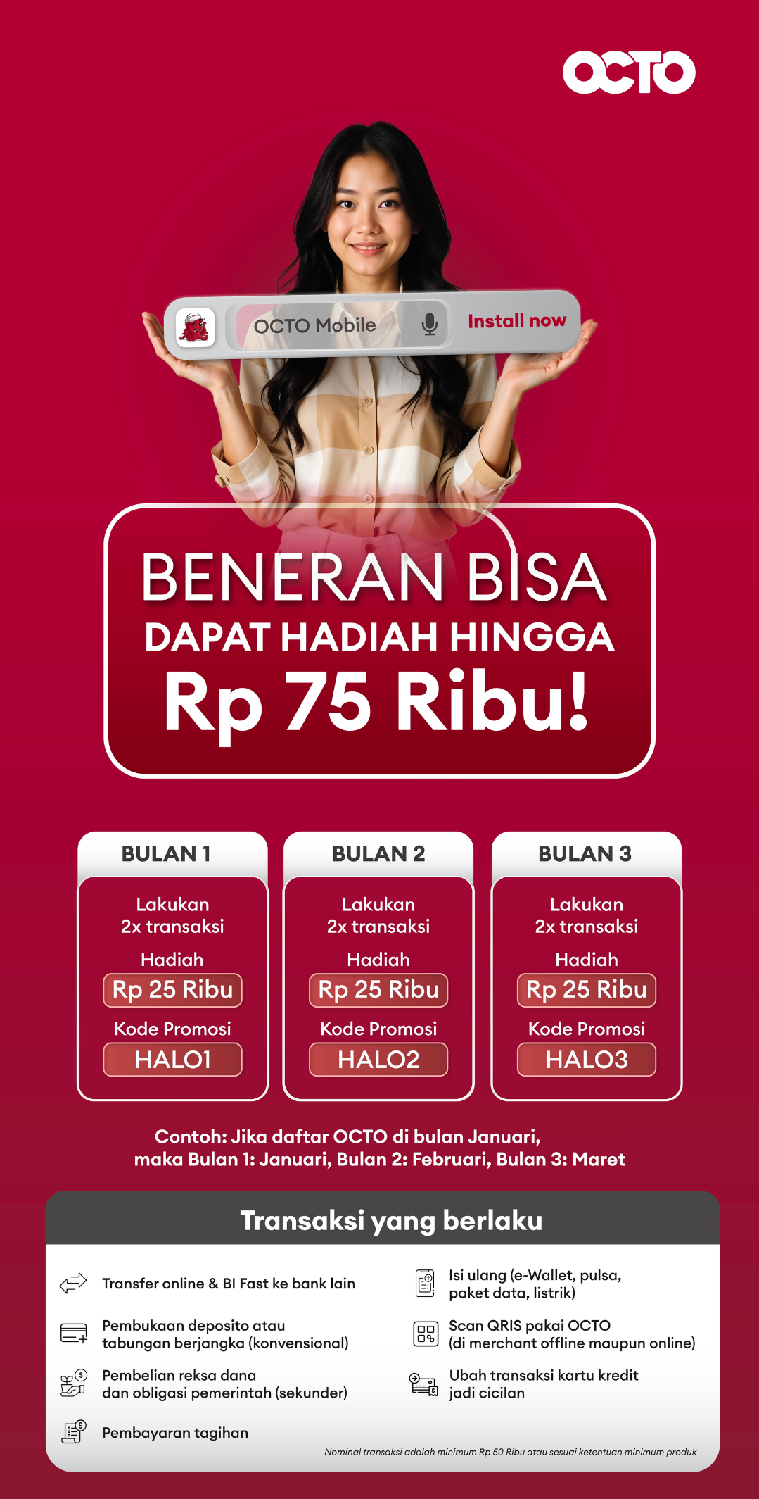 - Promo berlaku untuk Pengguna baru OCTO yang registrasi di periode Januari-September 2025