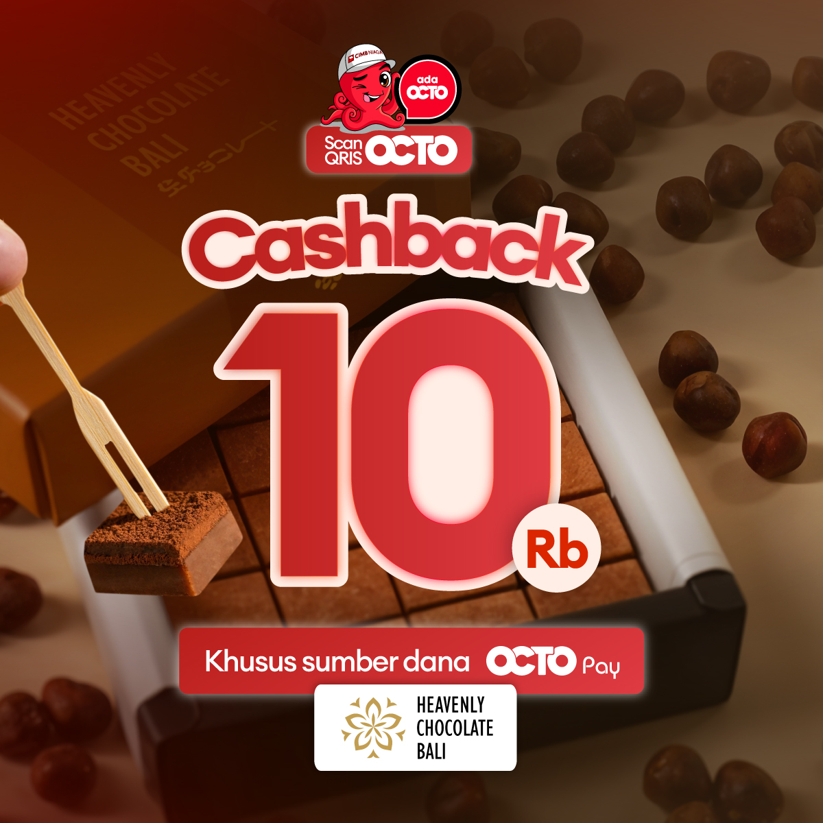 List Outlet-Program Cashback 30% di Heavenly Chocolate Bali dengan menggunakan QRIS OCTO Mobile