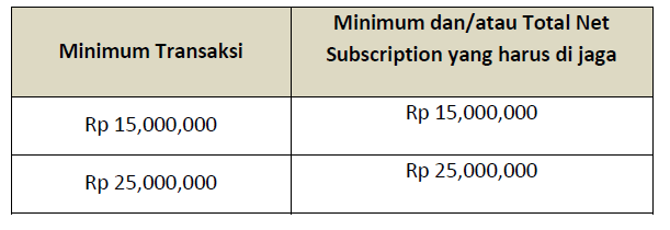 3. Nasabah wajib melakukan 1 (satu) kali pembelian Reksa Dana Reguler (kecuali jenis pasar uang) dengan jumlah minimum transaksi sbb: