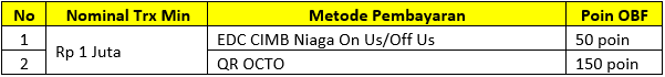 - Nasabah wajib memasukkan kode promo: OCTOBF di akun OCTO sebelum melakukan transaksi.