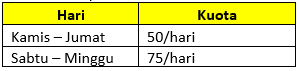 - Total hadiah per batch adalah 250 hadiah sesuai dengan pembagian kuota sebagai berikut: