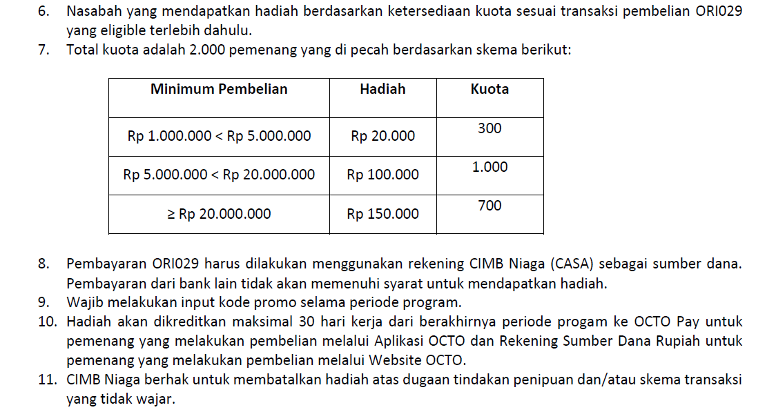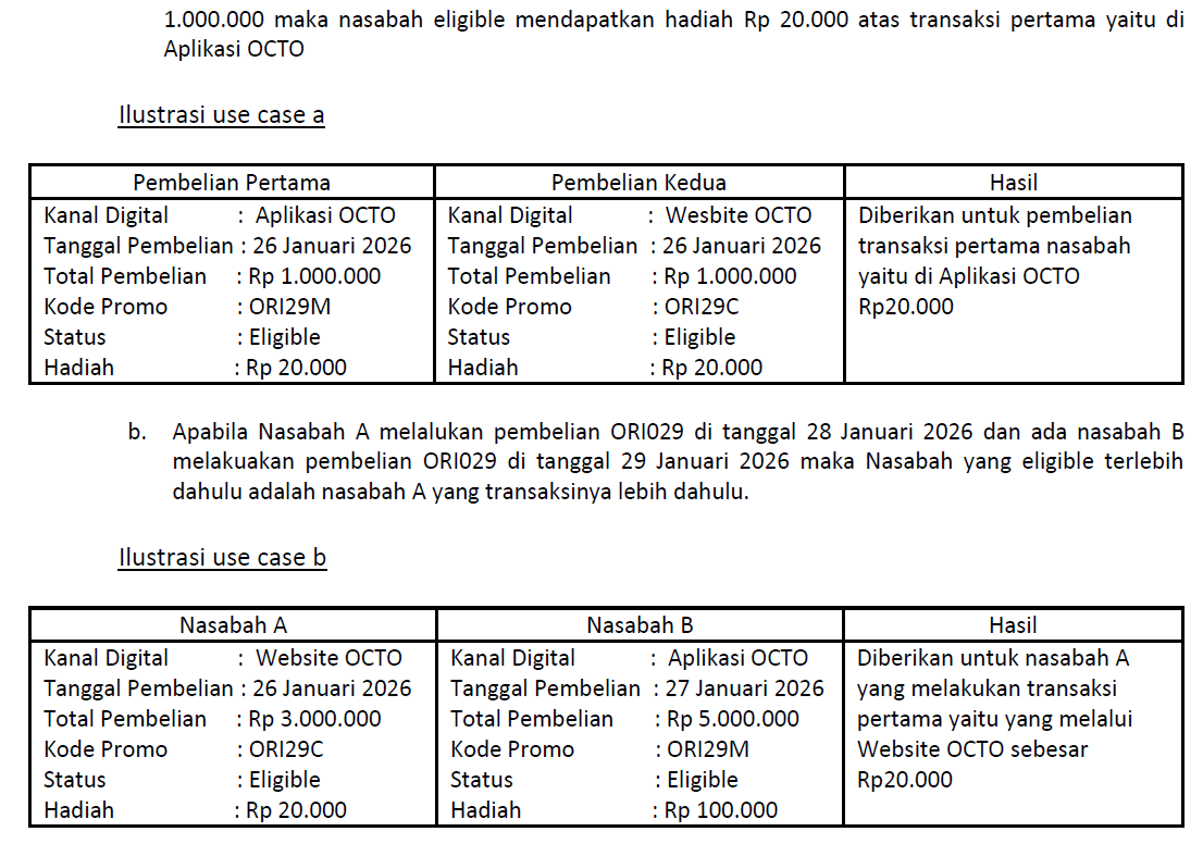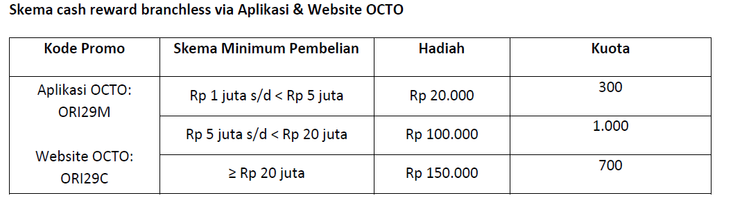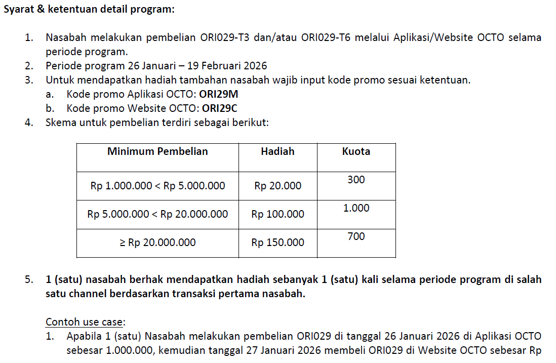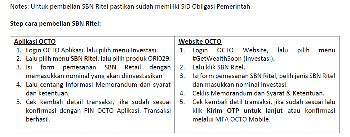 Pembelian ORI029-T3 (Tenor 3 tahun) dan ORI029-T6 (Tenor 6 tahun) di Aplikasi/Website OCTO