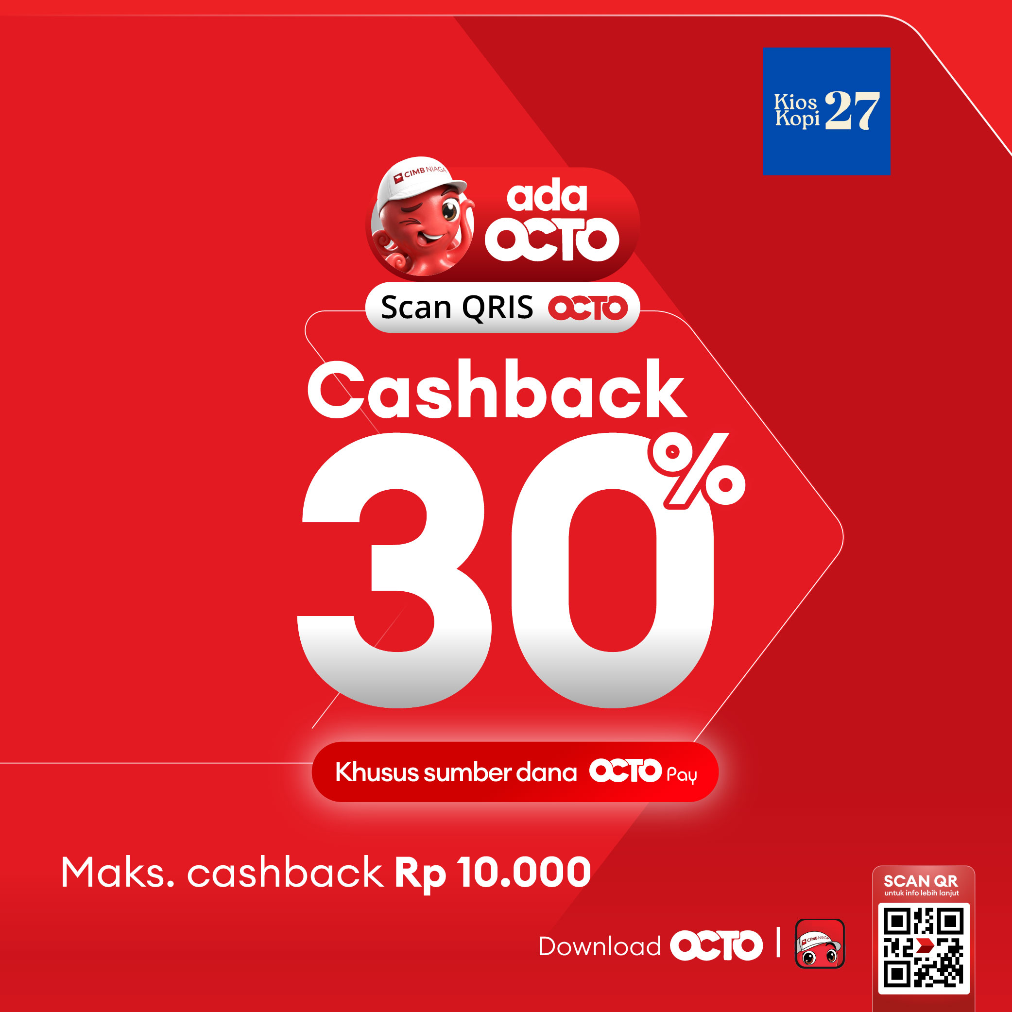 Cashback 30% di Kios Kopi 27, Singkawang dengan menggunakan QRIS OCTO