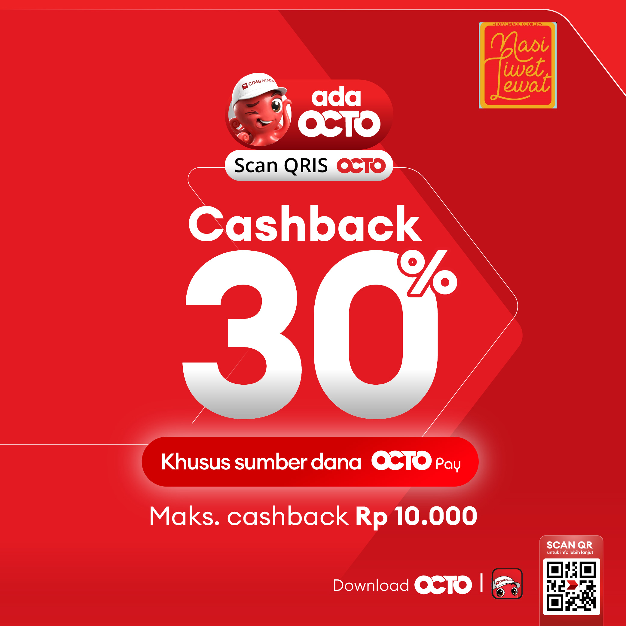 Cashback 30% di Nasi Liwet Lewat, Singkawang dengan menggunakan QRIS OCTO