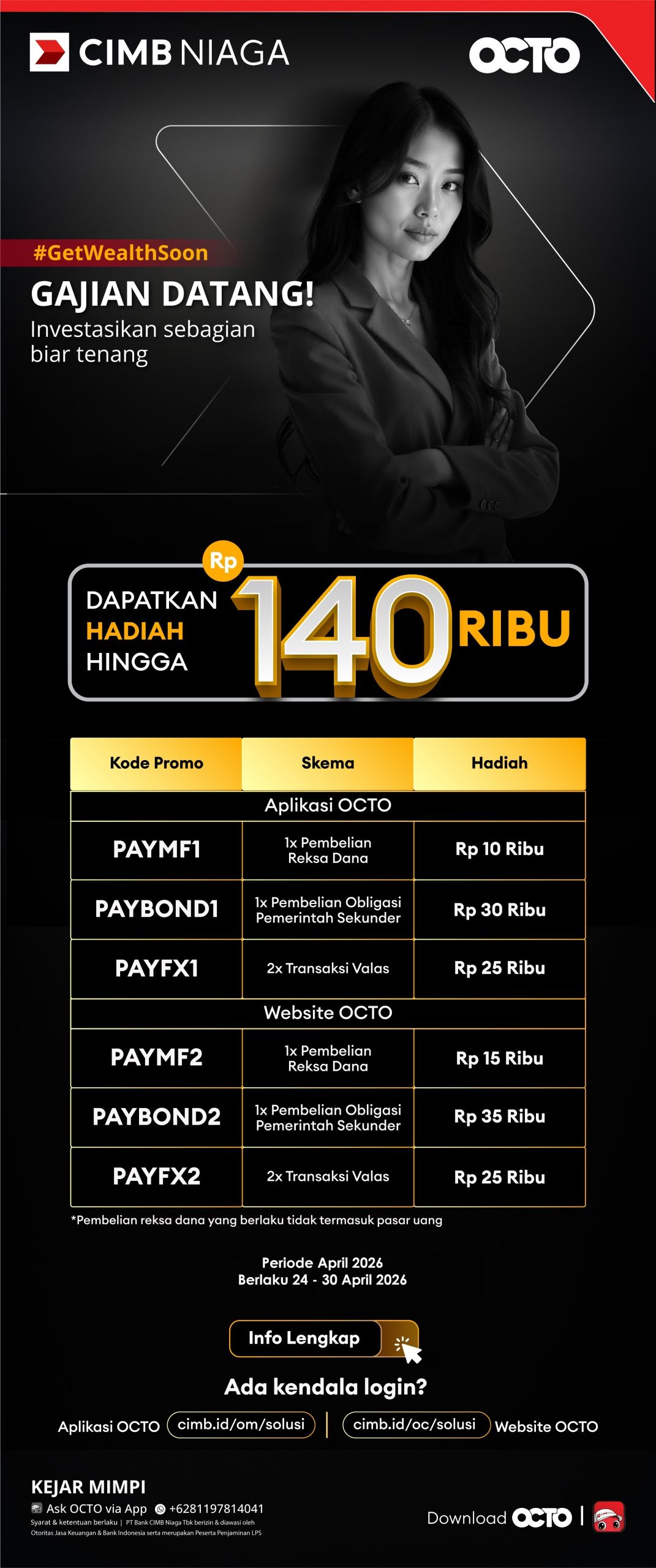 Beneran gajian, investasi & transaksi valas di Aplikasi dan Website OCTO dapat hadiah hingga Rp 140 Ribu