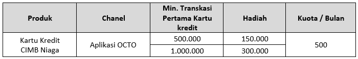 – Nasabah yang mengajukan Kartu Kredit melalui Aplikasi OCTO.