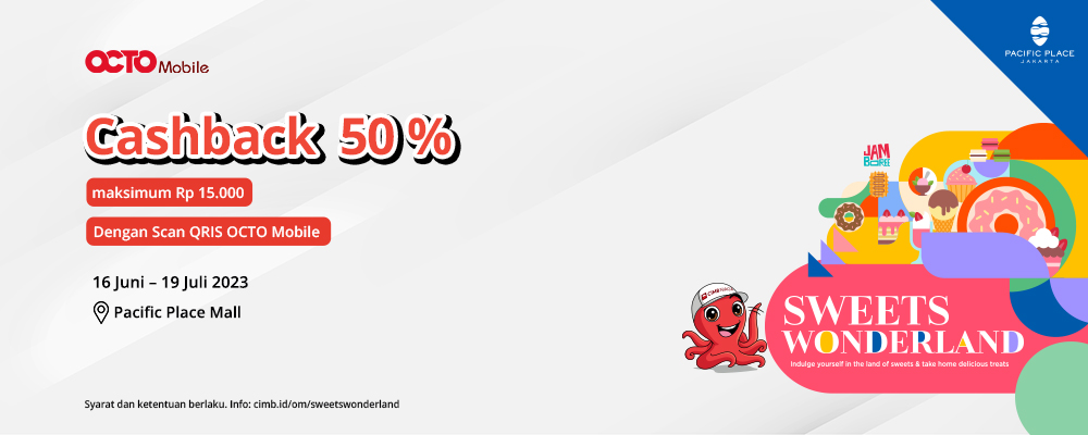 Cashback 50% di event Sweets Wonderland, Mall Pacific Place, menggunakan Scan QRIS OCTO Mobile