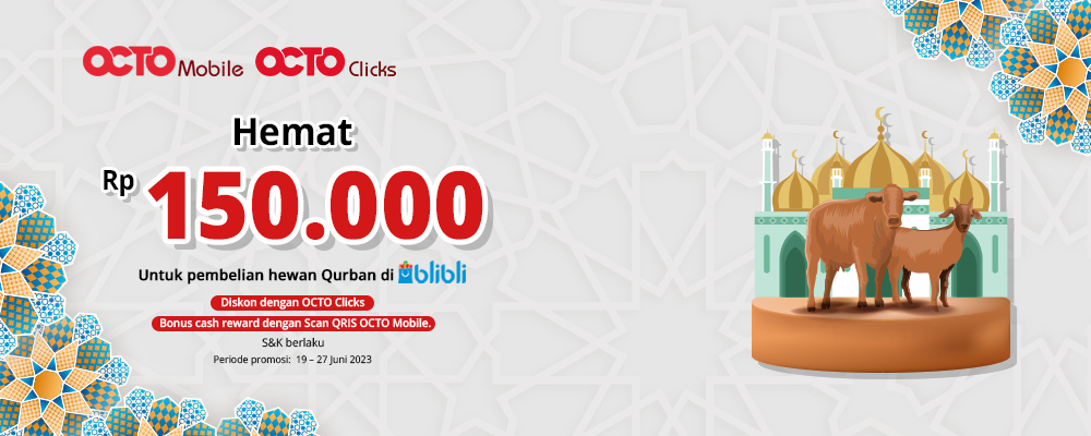 Hemat Rp 150.000 untuk pembelian Hewan Qurban menggunakan OCTO Clicks & QRIS OCTO Mobile di Blibli