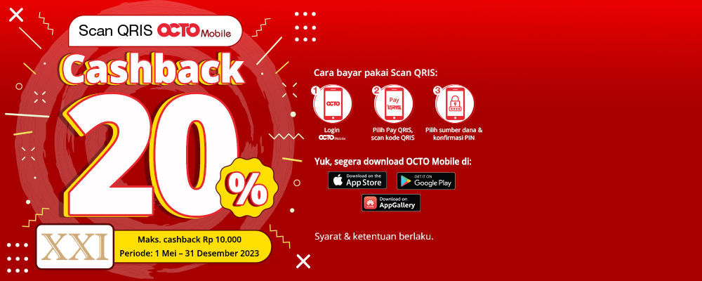 Cashback 20% di Cinema XXI Menggunakan QRIS OCTO Mobile