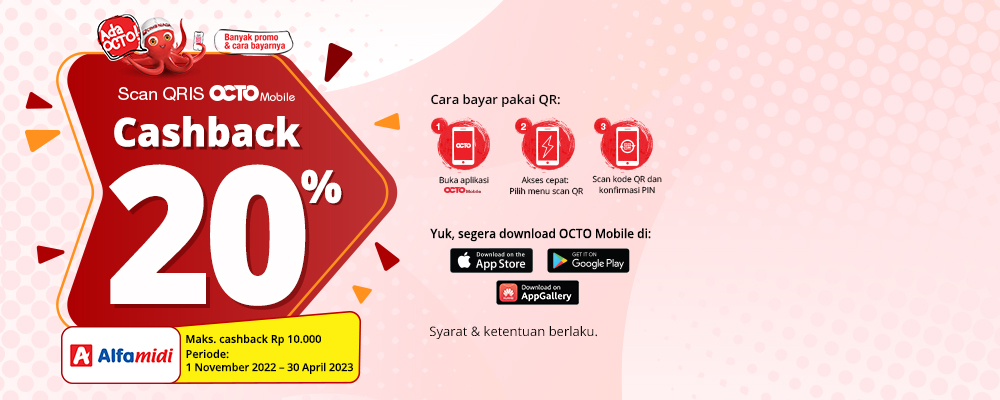 Cashback 20% di Alfamidi dengan Scan QRIS OCTO Mobile