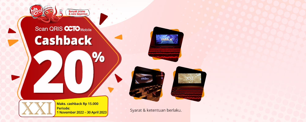 Cashback 20% di Cinema XXI dengan Scan QRIS OCTO Mobile