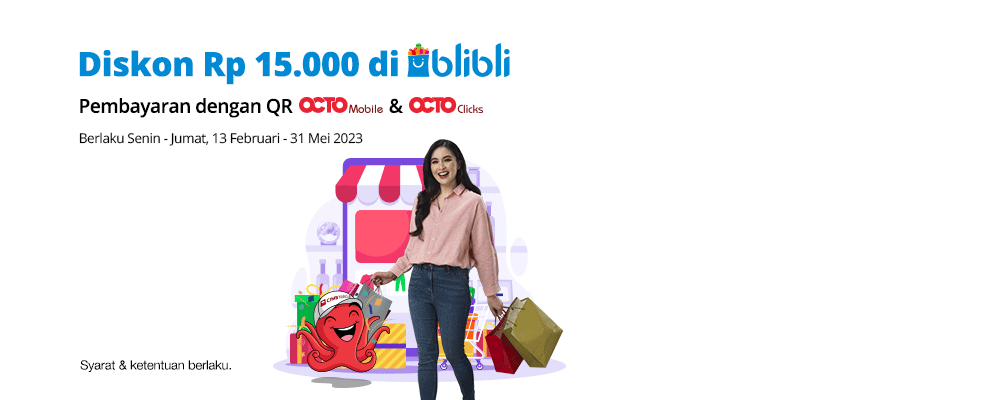 Diskon Rp 15.000 di Blibli menggunakan OCTO Clicks dan QR OCTO Mobile