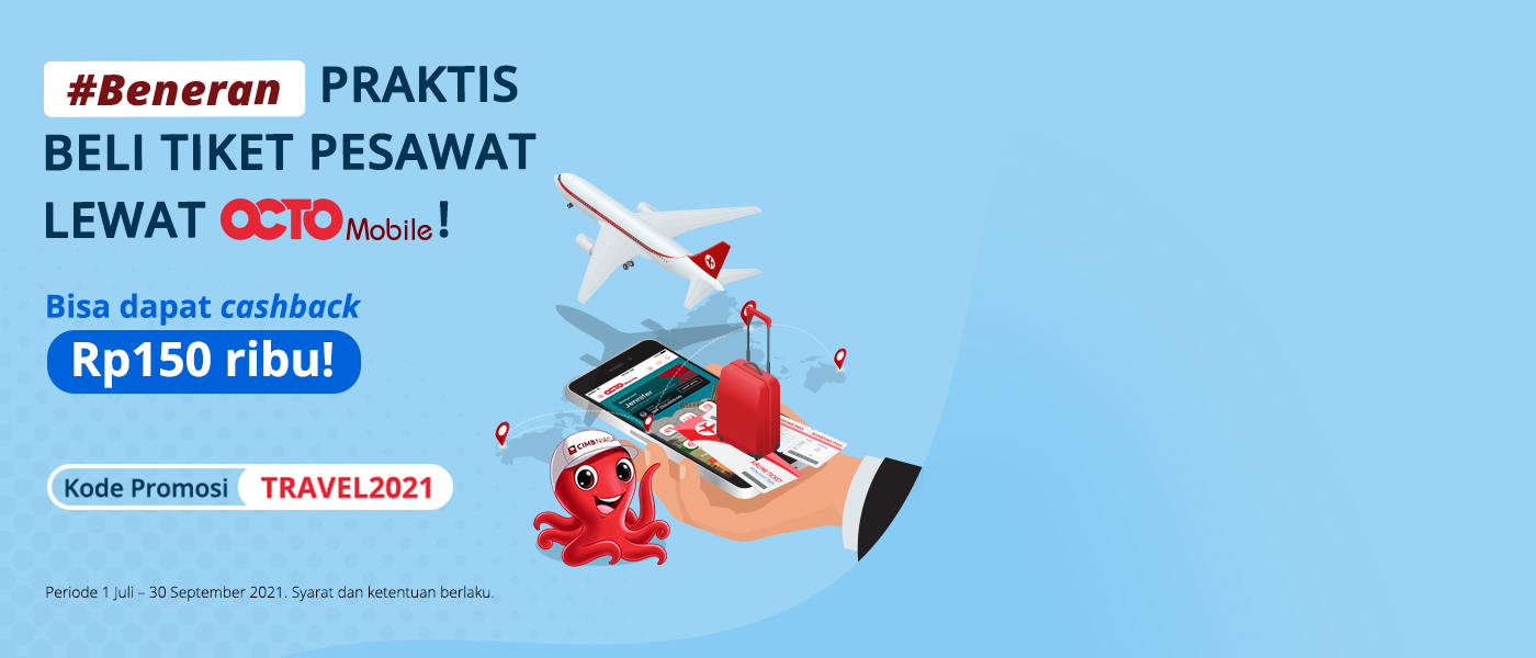 Cashback Rp 150.000 untuk setiap pembelian tiket pesawat di OCTO Mobile