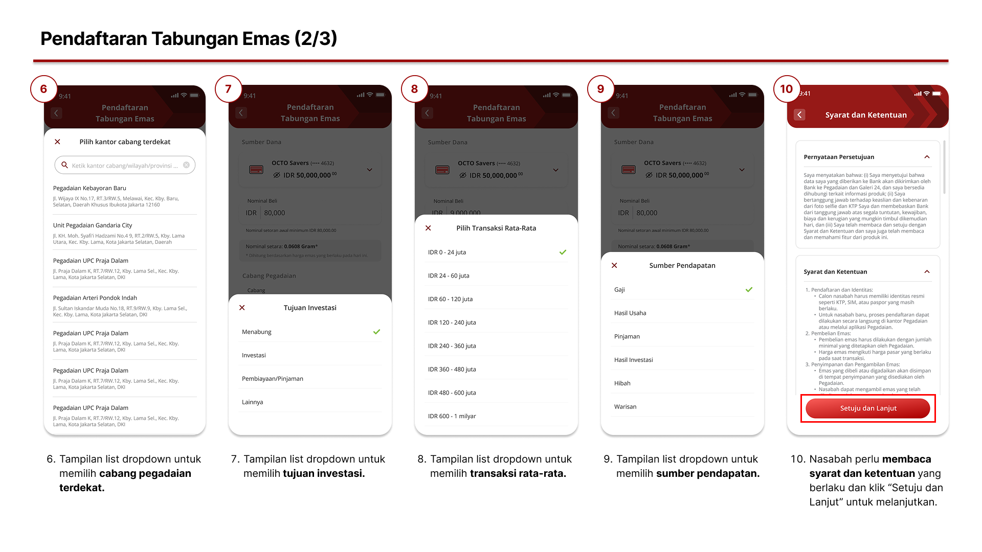 - Bagaimana cara melakukan registrasi untuk investasi emas di Pegadaian melalui Aplikasi OCTO? Untuk melakukan registrasi, cukup buka Aplikasi OCTO, pilih menu Daftar & Investasi kemudian pilih menu Emas Oleh Pegadaian dan ikuti langkah-langkah pendaftaran dengan memasukkan data diri, nominal saldo awal dan lainnya. Sebagai informasi, registrasi tabungan emas ini hanya untuk Nasabah yang memiliki minimal 1 rekening CASA.
